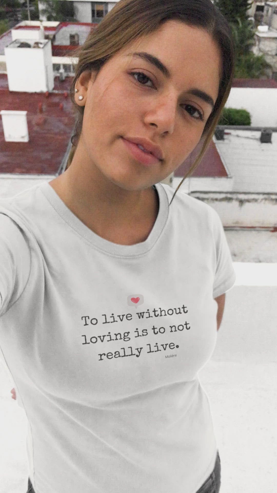 To live without loving is to not really live, quoted by French playwright, actor, and poet Moliere and printed on our premium t-shirt.